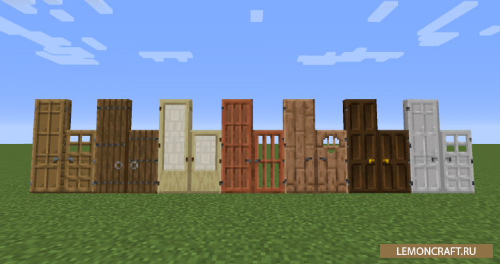 Мод на высокие двери Dramatic Doors добавляет в игру новые двери, которые будут отличаться от стандартных своей высотой (3 блока вместо 2). Отличный вариант для больших строений, типа замков, офисных зданий и т.п. Высота данных дверей позволит входить в них эндермену или проезжать через них сидя на лошади.